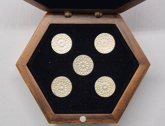 Baju Butang (Heritage cuff buttons) cast in solid silver or solid 14k white gold. An integral part of Malaysia's traditional baju melayu, these pieces celebrate tradition and modern expression.